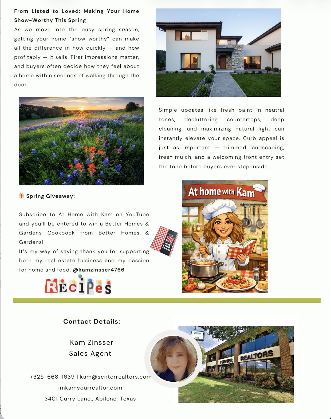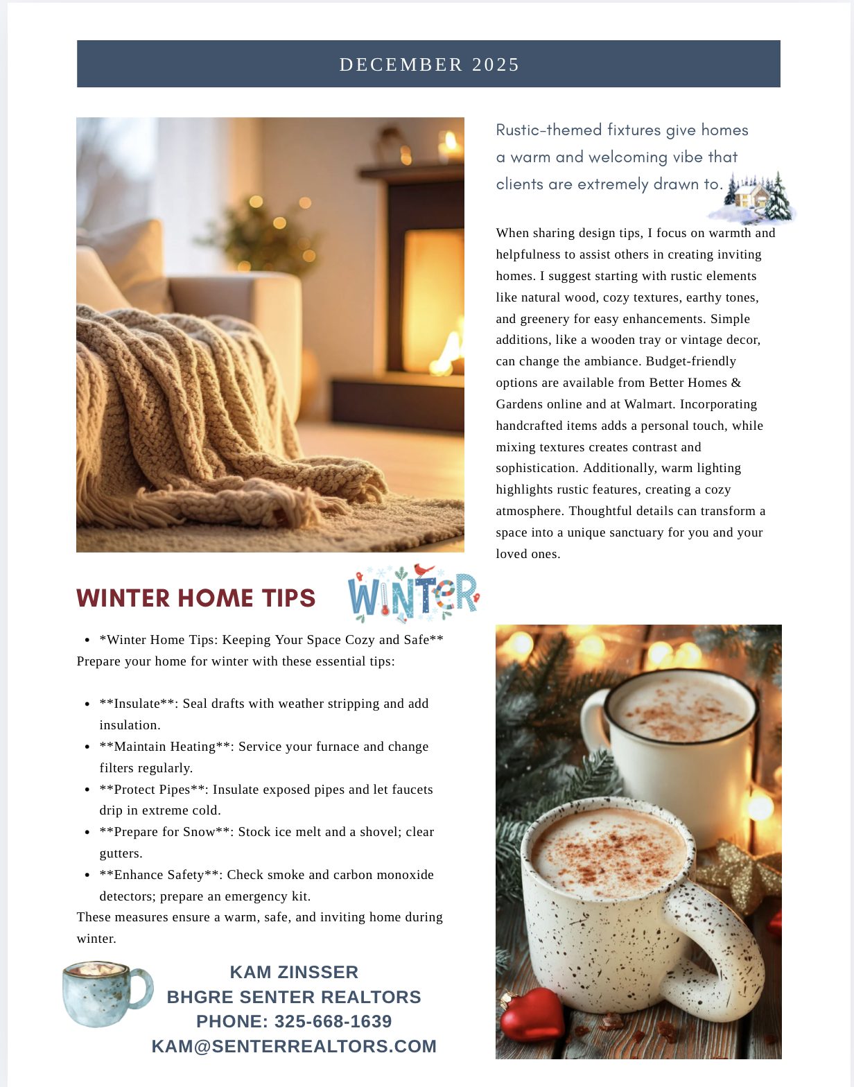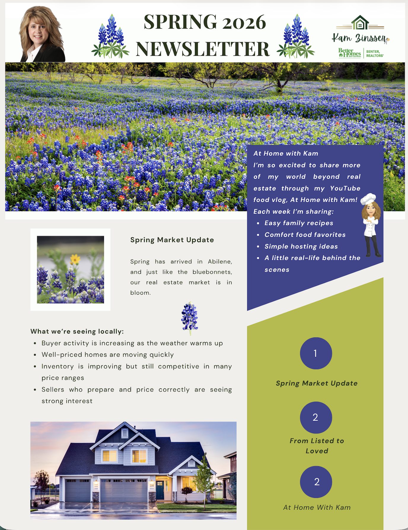 Hi friends, check out my quarterly newsletter. If you want to receive this at your home, please email me at kam@senterrealtors.com to sign up.